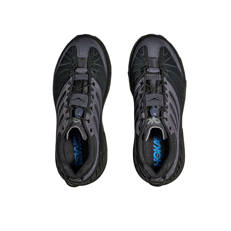 A essência de performance da HOKA é mantida com o amortecimento máximo e a geometria rocker, proporcionando uma experiência de conforto inigualável. O resultado é a fusão perfeita entre a robustez para as trilhas e um estilo refinado para o dia a dia, ideal para quem não abre mão da performance e valoriza um design superior.
